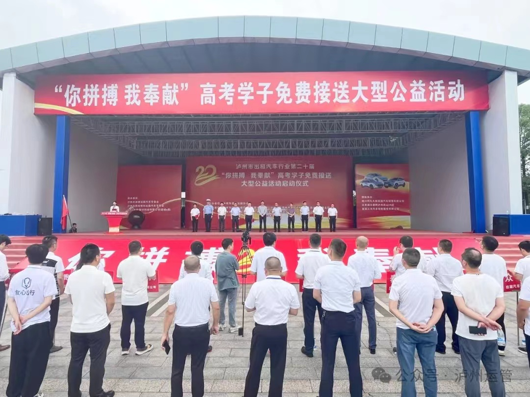 6月5日由瀘州市道路運輸協(xié)會承辦的第二十屆“你拼搏、我奉獻”高考學(xué)子免費接送公益活動在西南商貿(mào)城五區(qū)舉行啟動儀式,省交通廳、市上有關(guān)領(lǐng)導(dǎo)和瀘州市16家巡游出租汽車公司及網(wǎng)約車公司650輛參加此次送考活動的啟動儀式,隨著市領(lǐng)導(dǎo)宣布活動正式開始,參加活